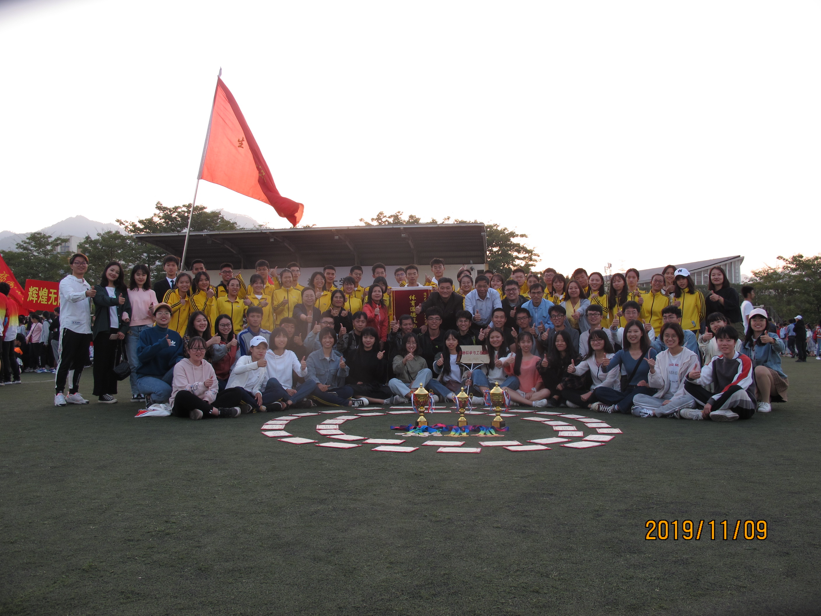 2019年11月9日,为期三天的福州大学第48届田径运动会圆满结束。在此次运动会中,我院参赛师生展现拼搏到底、团结一致的竞技精神,在去年的基础上,再次取得了优异的成绩:教工组团体总分第五名、男子学生乙组第三名以及女子学生甲组第六名。同时,我院的帐篷布置、协助运动员、广播宣传等工作也顺利完成,获得体育道德风尚奖。
