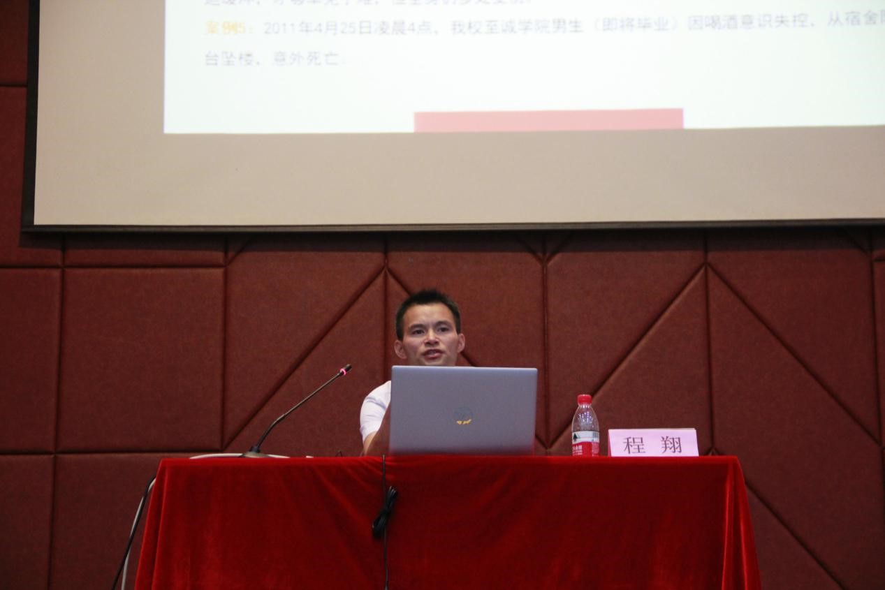 程翔老师围绕大学生的学习生活特点,结合近期社会、学校发生的一系列安全事件,以案释法,分别从财产安全、人身安全以及国家安全三个方面对同学们进行了较为全面的法制安全教育。强调了作为在校学生应注意防盗窃、防诈骗、防校园贷等,不轻信不贪婪,遇事应冷静处理,需要帮助时应及时向辅导员或保卫部等有关部门咨询。