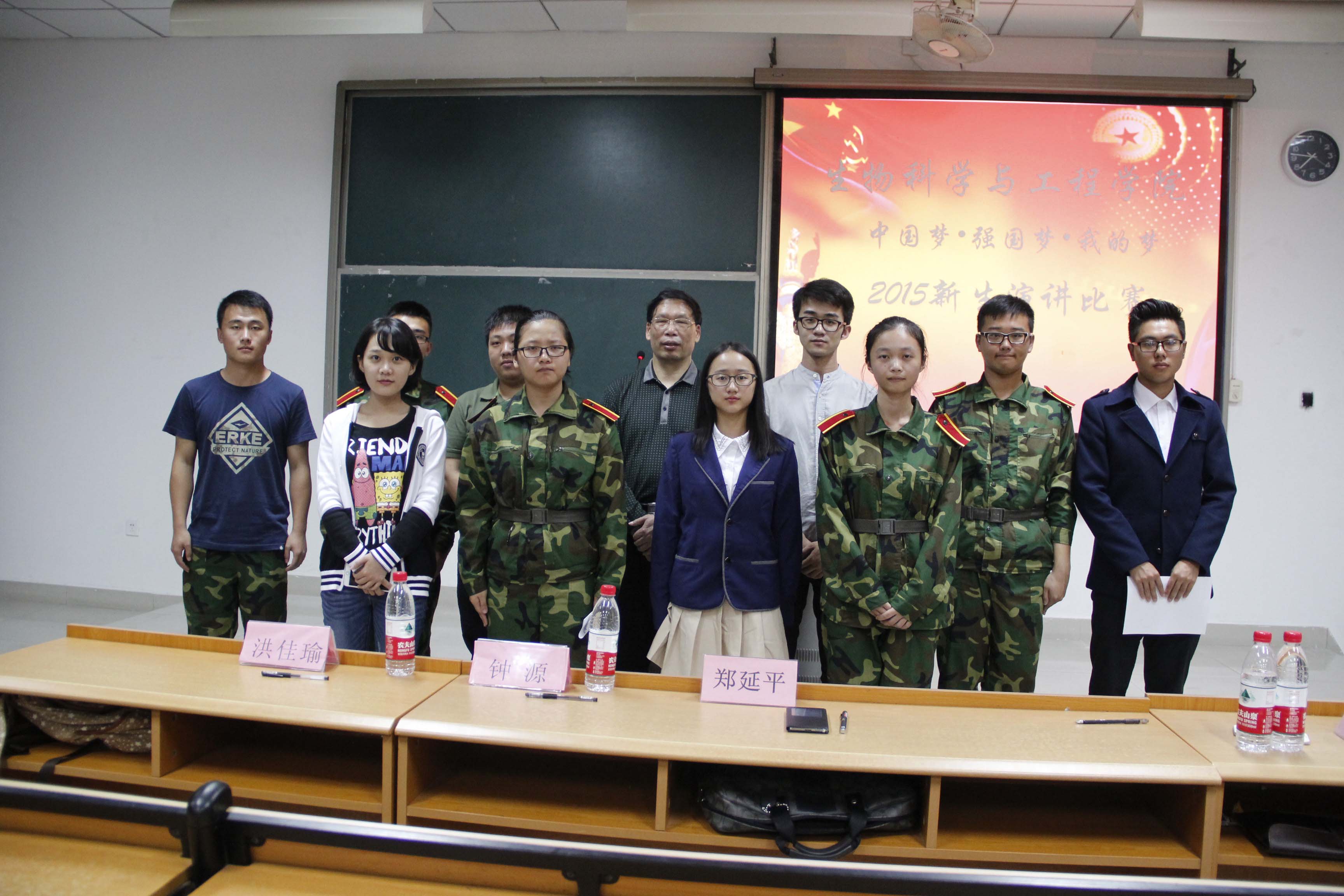 为响应习总书记提出的“中国梦”这一民族梦想,10月23日晚,生物科学与工程学院在文科教学楼204举行15级新生演讲比赛,本次演讲比赛以“中国梦 强国梦 我的梦”为主题。出席本次比赛的嘉宾有生工学院党委副书记郑延平,辅导员廖加炜、生工学院辩论队队长钟源、2014新生演讲比赛优胜者洪佳瑜,他们同时担任此次比赛的评委。