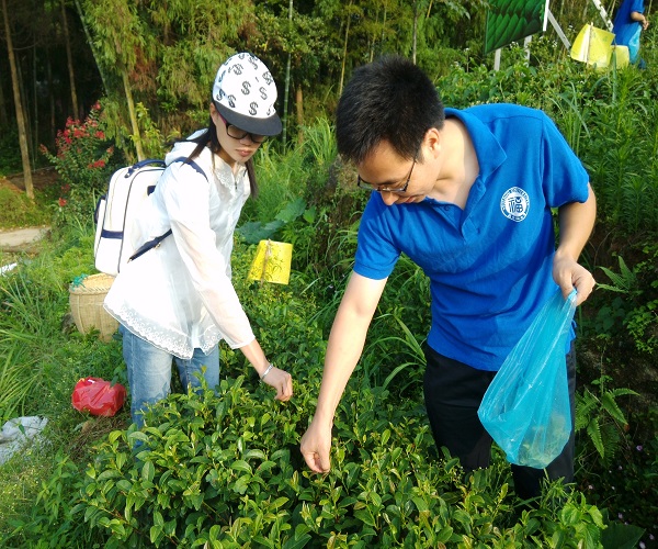 7月15日,福州大学生物科学与工程学院“科技助农,创业先行”暑期社会实践队在13级辅导员陈育芳老师的带领下走进方家山村茶园采摘茶叶,感受畲族文化,体验田园生活。