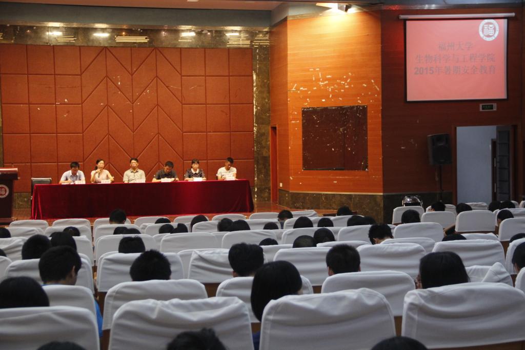 7月10日下午,生物科学与工程学院在嘉锡厅召开暑期安全教育大会。参加本次会议的有生工学院党委副书记郑延平,团委书记周越,辅导员林婧烨、陈育芳,吕蓉蓉等。本次会议旨在做好学生暑期留校安全工作。