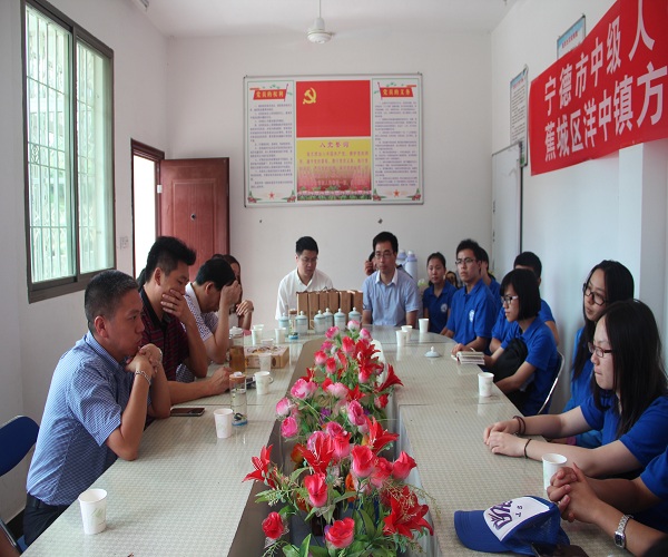 7.11日上午,我院领导带领生物科学与工程学院“科技助农,创业先行”暑期社会实践队赴福建省宁德市方家山村进行创业交流,开展座谈会。参加本次座谈会的嘉宾有当地挂职干部罗维铨校友,生工学院院党委书记王群,院党委副书记郑延平等老师及暑期社会实践队11名本科生队员。据悉,宁德市方家山村是省级扶贫开发重点村,挂钩帮扶与选派单位均为福州大学。