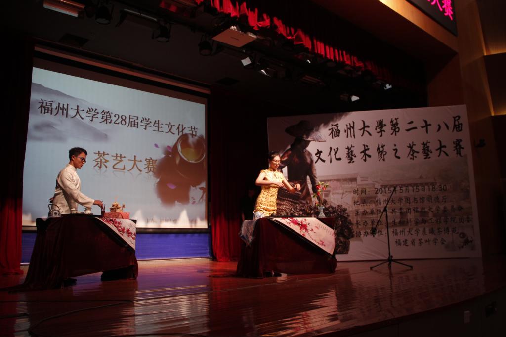 5月15日晚,由共青团福州大学委员会主办、生物科学与工程学院团委承办的福州大学第二十八届学生文化艺术节茶艺大赛在图书馆明德厅顺利举行。受邀担任本次大赛的评委有福建省茶叶学会副秘书长姚信恩、福建农林大学园艺学院茶学系主任郭玉琼以及来自福建茶叶进出口有限责任公司的高级茶艺师陈韡等。