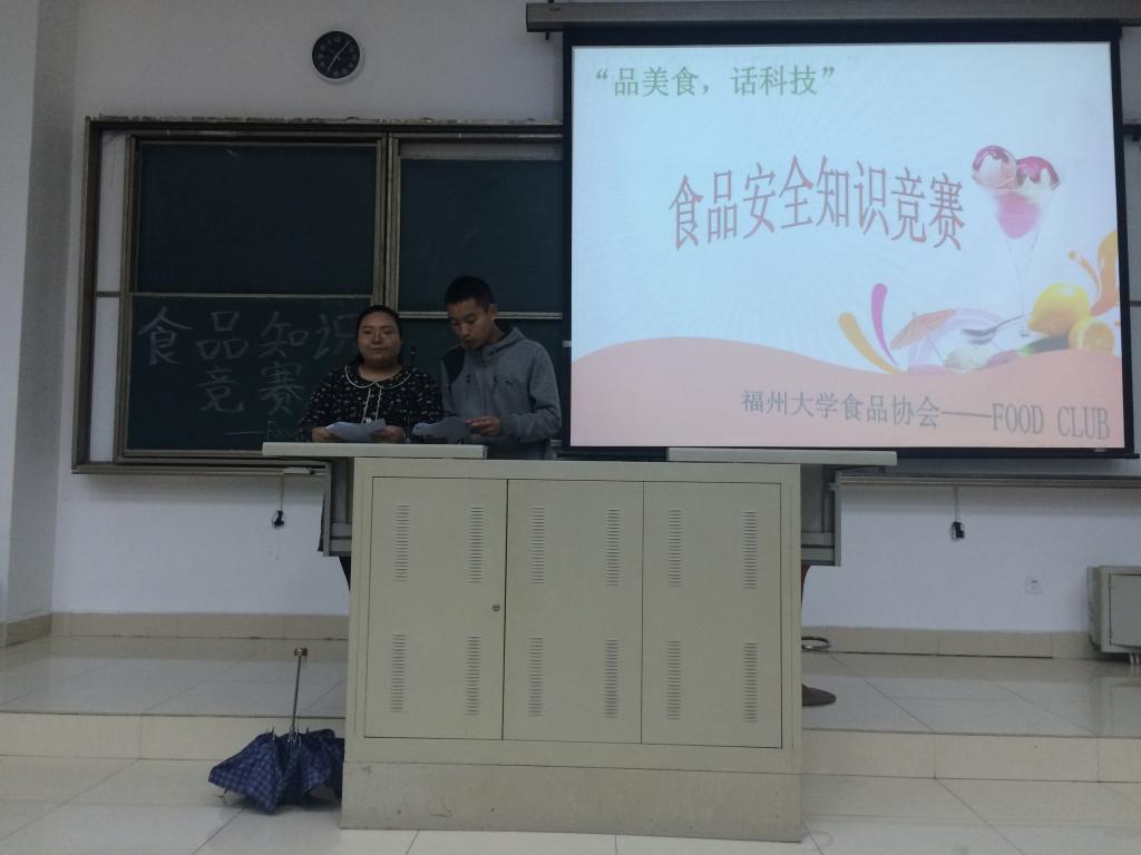 4月11日晚七点,生工学院食品协会在东二--100教室举办了食品知识安全竞赛,参赛对象为福州大学各学院代表团。