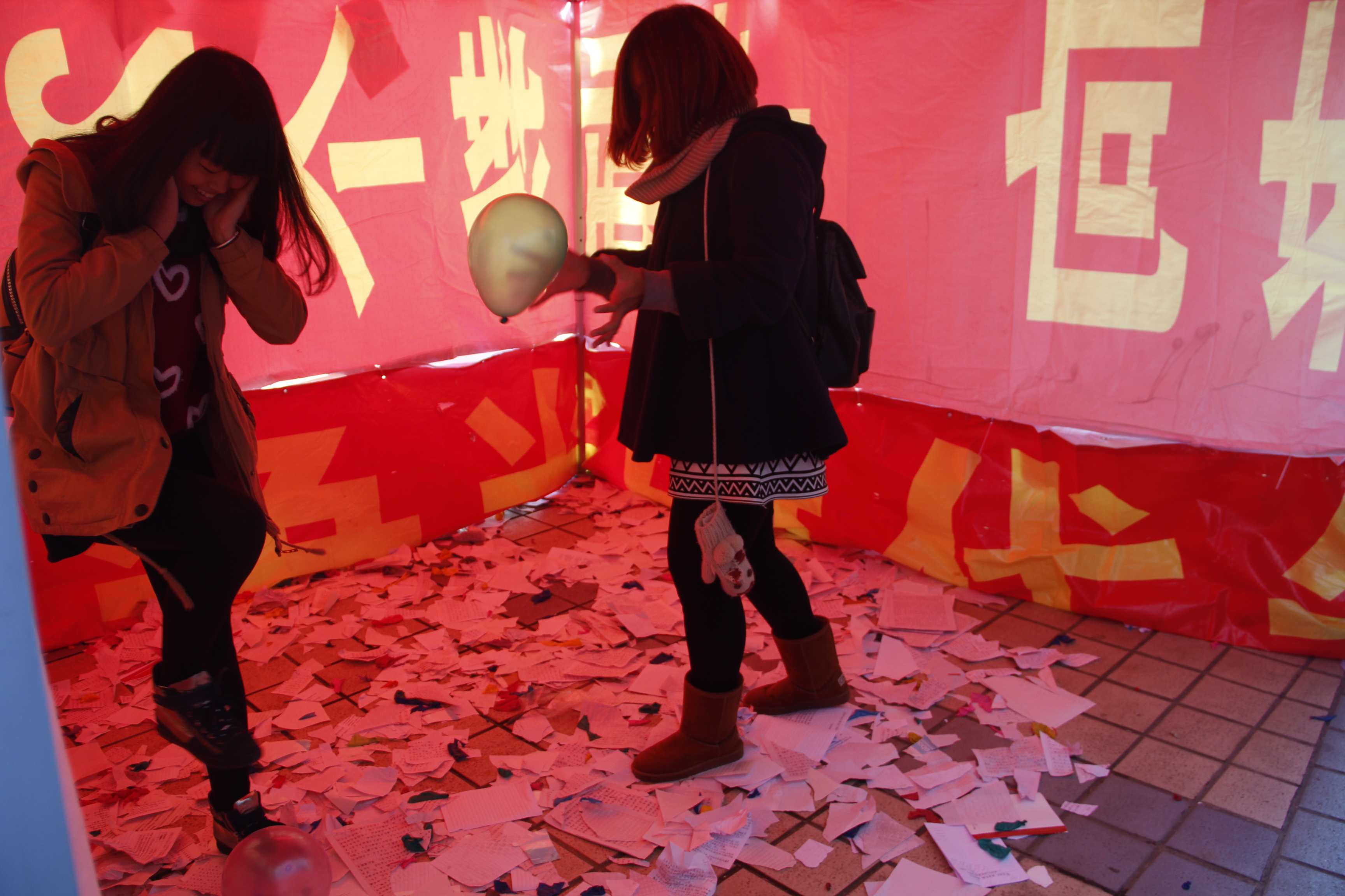 为了使这次活动能够顺利开展,在活动前期准备过程中,生工心理发展部通过学院微博、部门微博以及各班级微博的转发,让更多的同学知道并参与到这次活动中来。同时现场准备精美礼品,鼓励大家积极参加。此次活动共分为两部分,第一部分是通过发放100份关于心理小常识的宣传单,向大家介绍调整情绪、缓解压力等方法。第二部分是搭建心理宣泄室,供参与的同学发泄心中的情绪。为了让大家能够尽情地宣泄,生工心理发展部特意准备了两袋气球供大家踩和1000多张废纸供大家撕。每位参与者宣泄完后,可在便利贴上写下自己参与活动后的心情或感想贴在展板上,供大家分享。在活动过程中,大家通过在宣泄室中尽情地发泄自己心中的忧郁与不满,使自己瞬间释放了心中压力,情绪得到了良好的控制。参与到此次活动中的同学纷纷表示:“经过宣泄后,心中的一切烦恼都忘记了,心情瞬间好了起来,希望学校以后能多举办一些类似活动,帮助大家释放压力。”