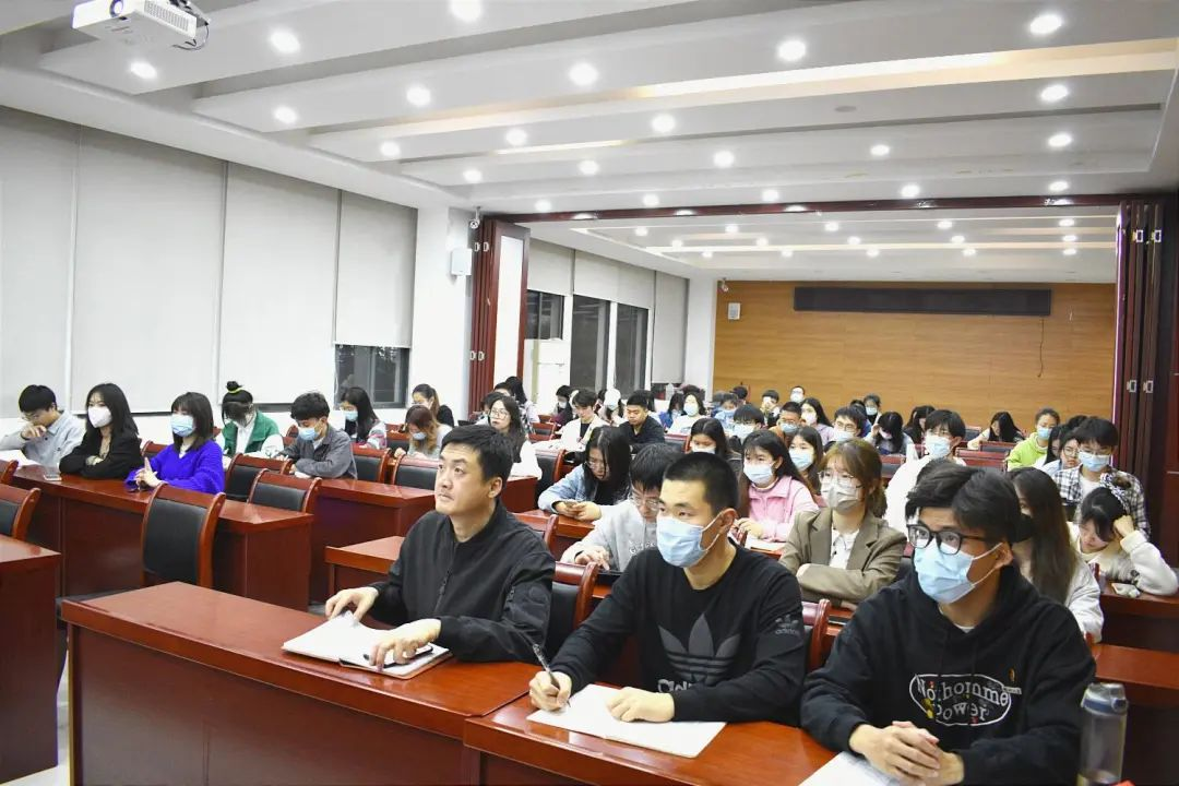 开班仪式结束后,曹仁秋副书记为本期青马班学员做了《汲取百年历史伟力,开启新的伟大征程》为主题的专题党课。曹仁秋副书记从明确的“两个确立”重大意义、党的百年奋斗历史成就和历史经验、马克思主义中国化新的飞跃、习近平新时代中国特色社会主义思想的核心内容、新时代的中国共产党等五个方面与青马班学员们分享了学习党的十九届六中全会精神的心得体会。同学们认真学习、仔细聆听,受益匪浅、感触良多。
