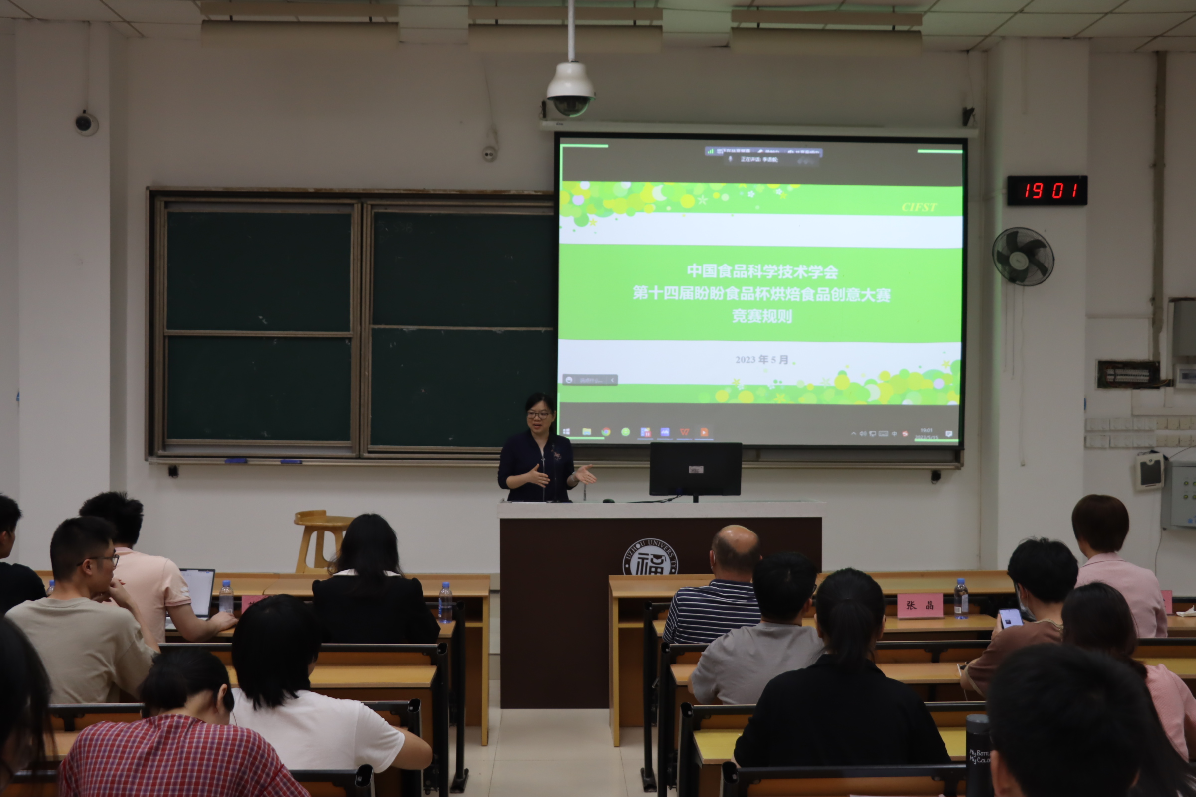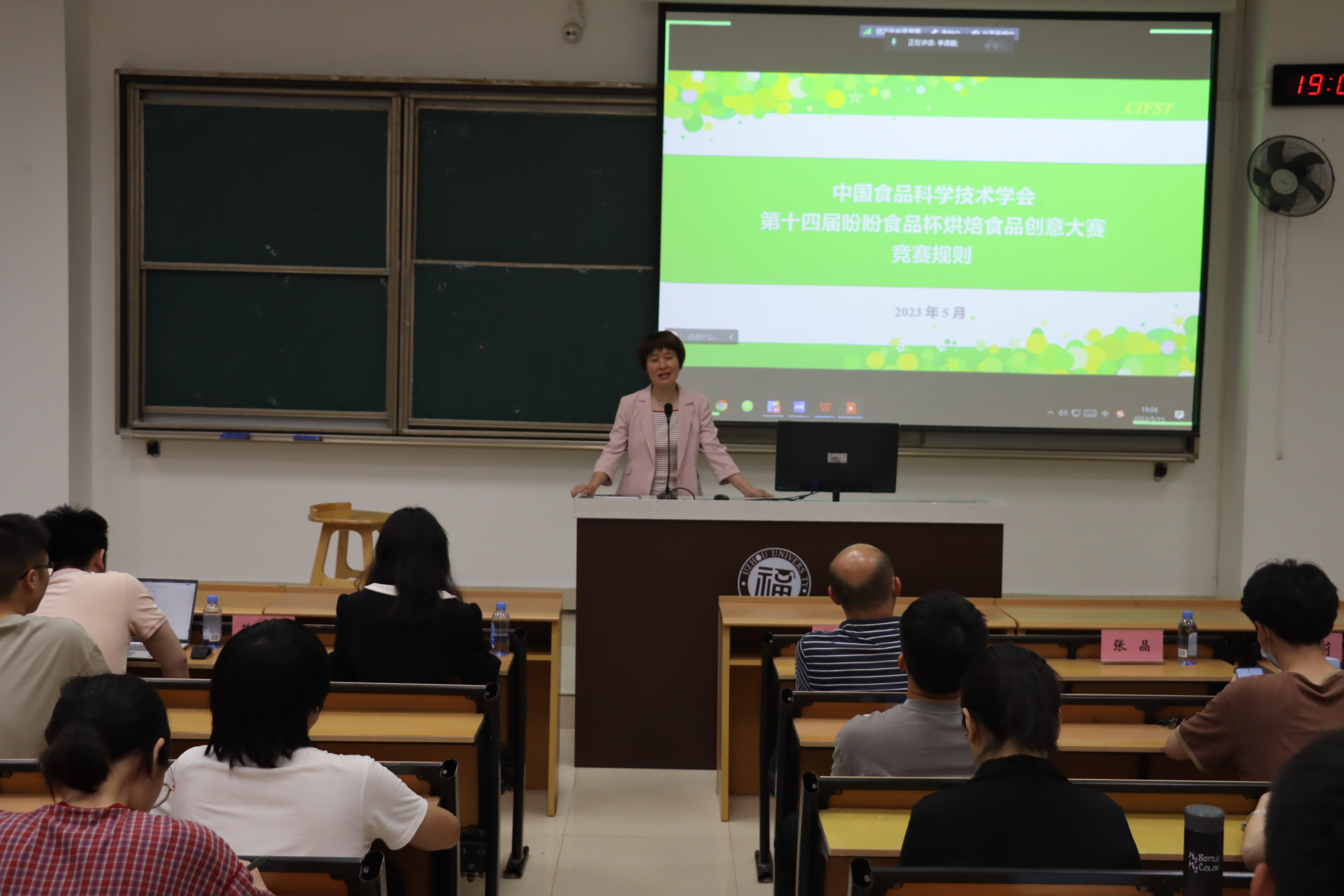 随后,我院倪莉教授讲述了IFF比赛的渊源、本次比赛的主题以及相关的要求,指出本次大赛的目的是想要推进高校和企业产学研合作,促进食品行业的发展;建议大家关注食品行业的发展趋势,抓住热点,鼓励大家通过比赛积极思考、激发兴趣,设计自己的目标。
