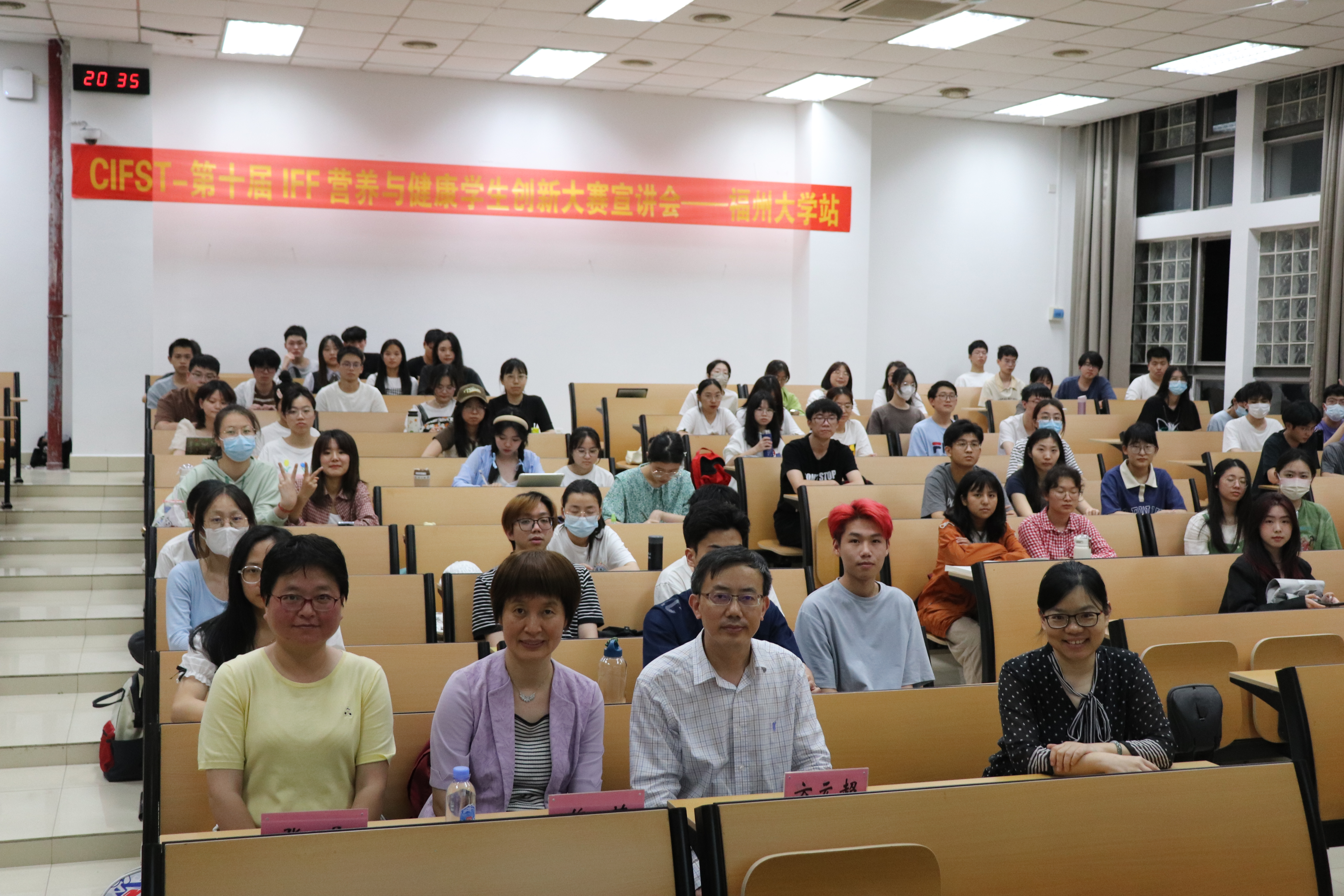 在IFF营养与健康学生创新大赛宣讲会上,学院食品创新比赛负责人张雯老师作为主持人对大赛主办方的到来表示热烈欢迎;院团委书记张晶老师上台发言以鼓励大家积极参加本次比赛,希望大家可以把平常所学的知识灵活运用到比赛中,收获难得的宝贵经验。