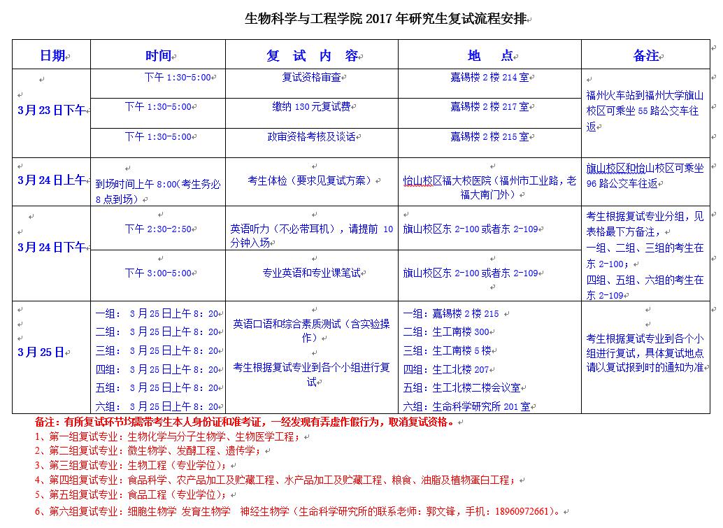 1、报到时间:2017年3月23日下午1:30~5:00;报到地点:福州大学旗山校区嘉锡楼二楼生物科学与工程学院214室。