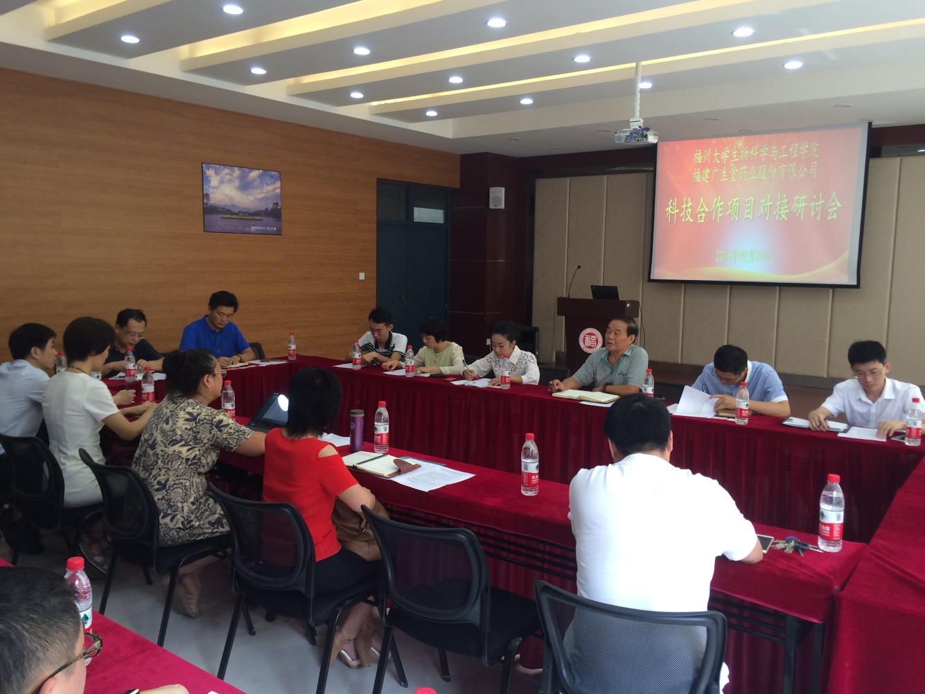 首先,宾主双方分别介绍了各自单位的基本情况,双方均表达了要进行深度科技合作的愿望。座谈会的主要议题是进行科技合作项目对接,我院十位教师分别介绍了自己的研究方向以及准备与福建广生堂药业股份有限公司开展合作的项目情况;福建广生堂药业股份有限公司的研发人员也就他们关心的问题与我院教师进行了热烈的探讨。会场气氛热烈,双方都对即将开展的合作充满信心。