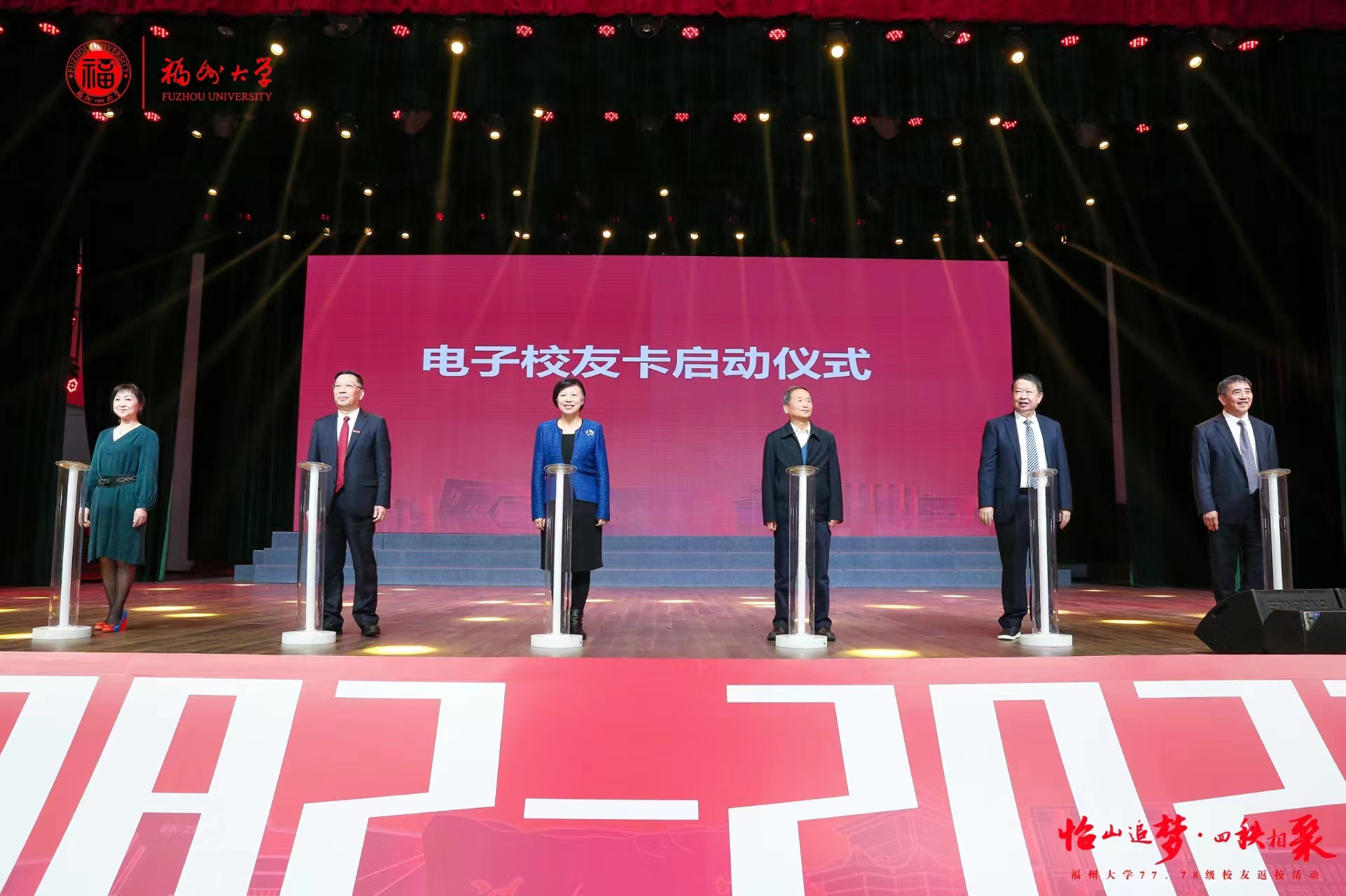上午,由学校举办的返校欢迎会在旗山校区宏晖文体综合馆隆重举行。欢迎会上,作为杰出校友代表,我院78级校友轻工业系轻工机械班陈津应邀上台与校领导和校友代表一起启动了福州大学电子校友卡。