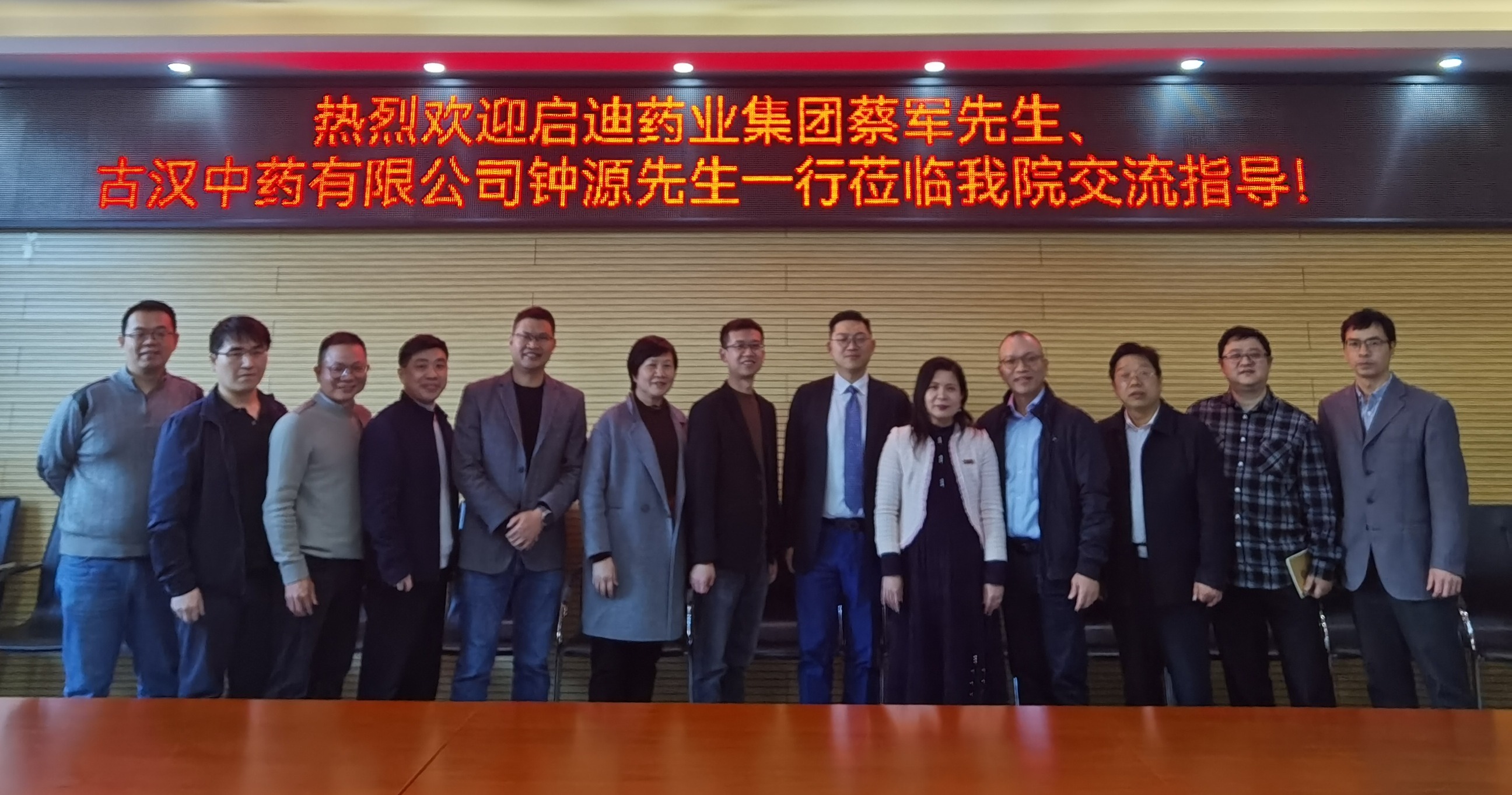 3月14日下午,启迪药业集团高级副总裁蔡军先生,古汉中药有限公司技术中心主任钟源先生,以及福州新之源生物有限公司董事长吴大平、副总黄子玲一行来到我院进行合作交流。院党委王秀萍书记、汪少芸院长、石贤爱副院长、刘树滔教授、林向阳教授、卢钟磊教授、张岑教授、张晨副教授等参加了座谈会。