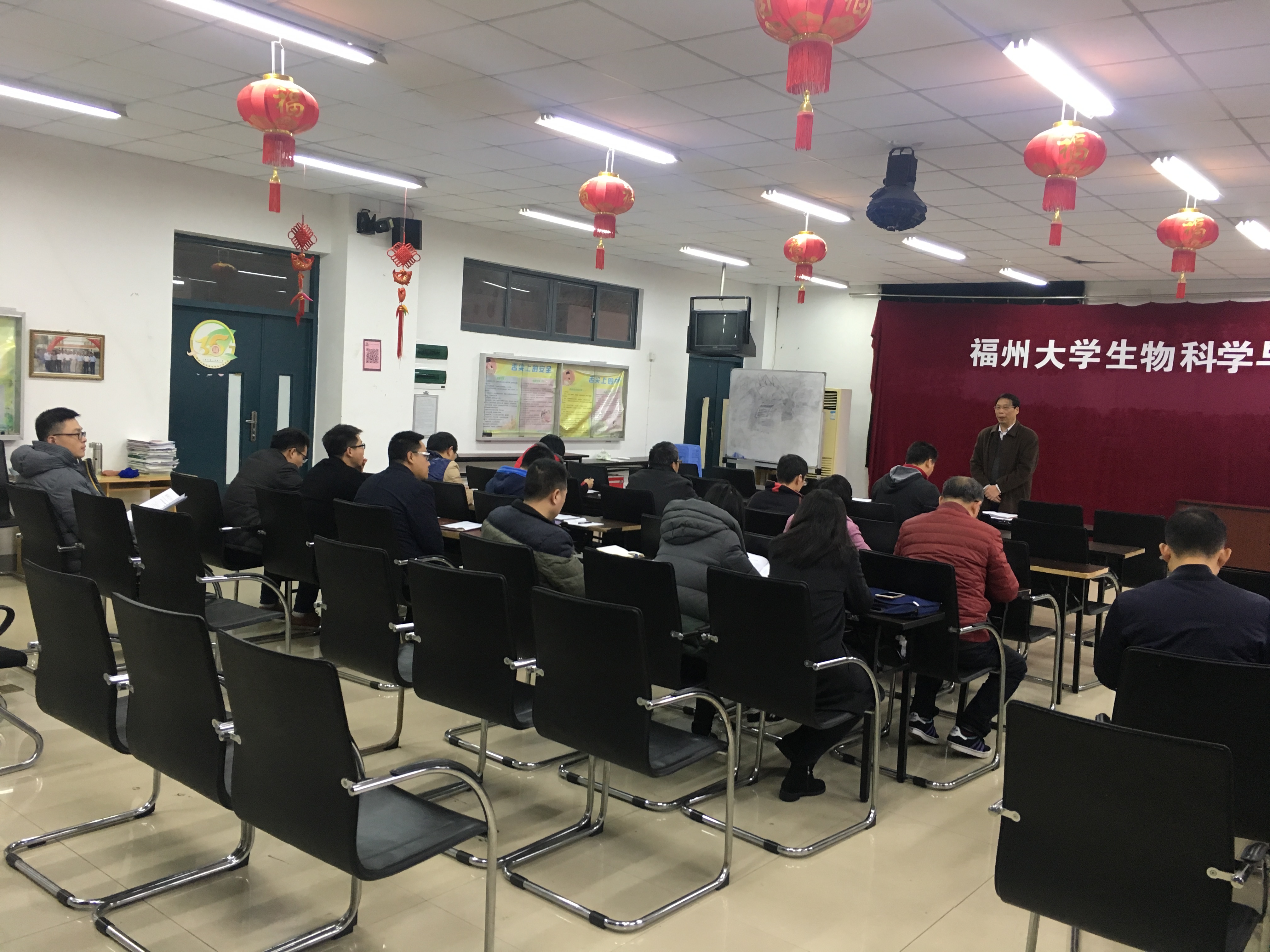 在寒假、春节来临之际,为确保学院实验室安全,消除隐患、有效遏制实验室各类安全事故的发生,确保师生人身安全和学校财产安全,让广大师生过一个欢乐、祥和、平安的春节和寒假,我院组织召开了实验室安全工作会议并开展了期末实验室安全大检查。1月8日下午,我院实验室安全工作会议在214会议室召开,院长助理林数老师主持会议,王群书记、郑延平副书记出席会议并讲话,学院办公室主任张志雄老师、实验中心副主任谢航老师、各研究所、各实验室的代表参加了会议。