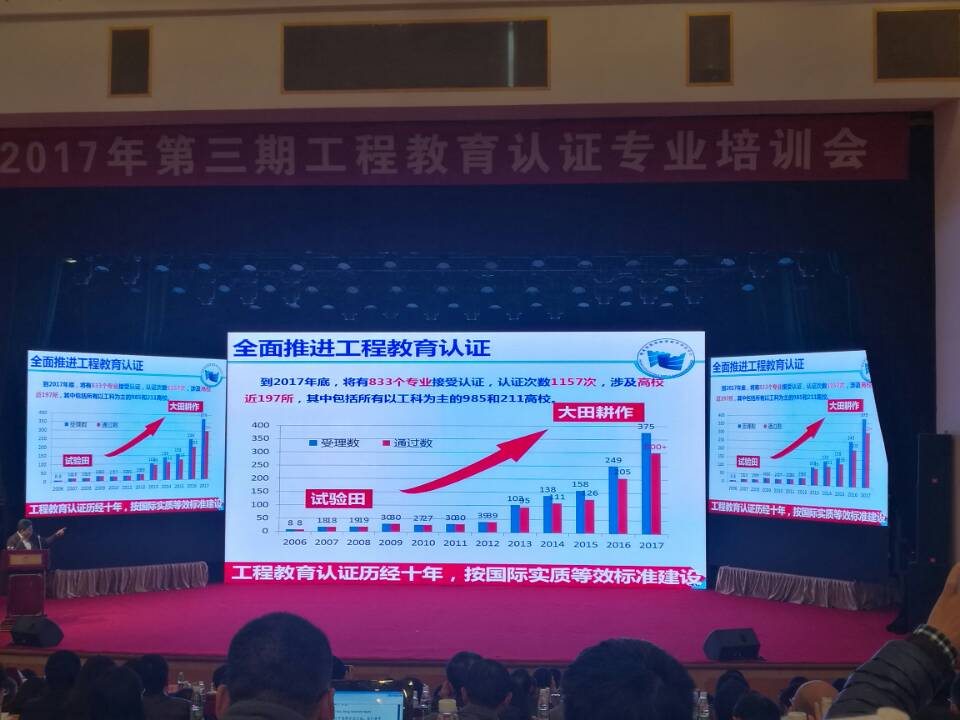 会上,教育部评估中心主任吴岩作题为《把握“六新”做好专业认证,建设一流本科专业》的主报告,对我国目前开展的专业认证工作进行了权威解读。报告指出,2006-2016年十年间,工程专业认证领域规模不断扩大,认证理念得到各高校、企业、学生的认可,越来越多的学校和专业参与进来,并从中获益。同时,在人文社科领域的经济、管理类专业也开展了认证试点。2017年,开展专业认证的学科领域逐步扩大,理学、农学、文学领域专业认证将全面启动。随着专业认证工作的持续开展,学生中心、成果导向、持续质量改进理念将向更多专业领域深入,各高校必须紧跟时代的需要,以成果为导向,坚持以学生为中心,转变教学观念,探索研究式、讨论式教学,才能提高质量,适应社会的需求。