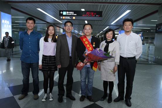 4月28日,庆祝“五一”国际劳动节暨表彰全国劳动模范和先进工作者大会在北京人民大会堂隆重举行。习近平、李克强、张德江、俞正声、刘云山、王岐山、张高丽等党和国家领导人出席大会。大会对2968名在各行各业做出突出成就的全国劳动模范和先进工作者进行了表彰。我院杨黄浩院长荣获“全国先进工作者”称号,并与众劳模和先进工作者一道受到习近平总书记的亲切接见。28日晚,杨黄浩院长从北京载誉归来,校人事处、校工会领导以及王群书记到机场迎接,向杨黄浩院长致以亲切的慰问和热烈的祝贺。
