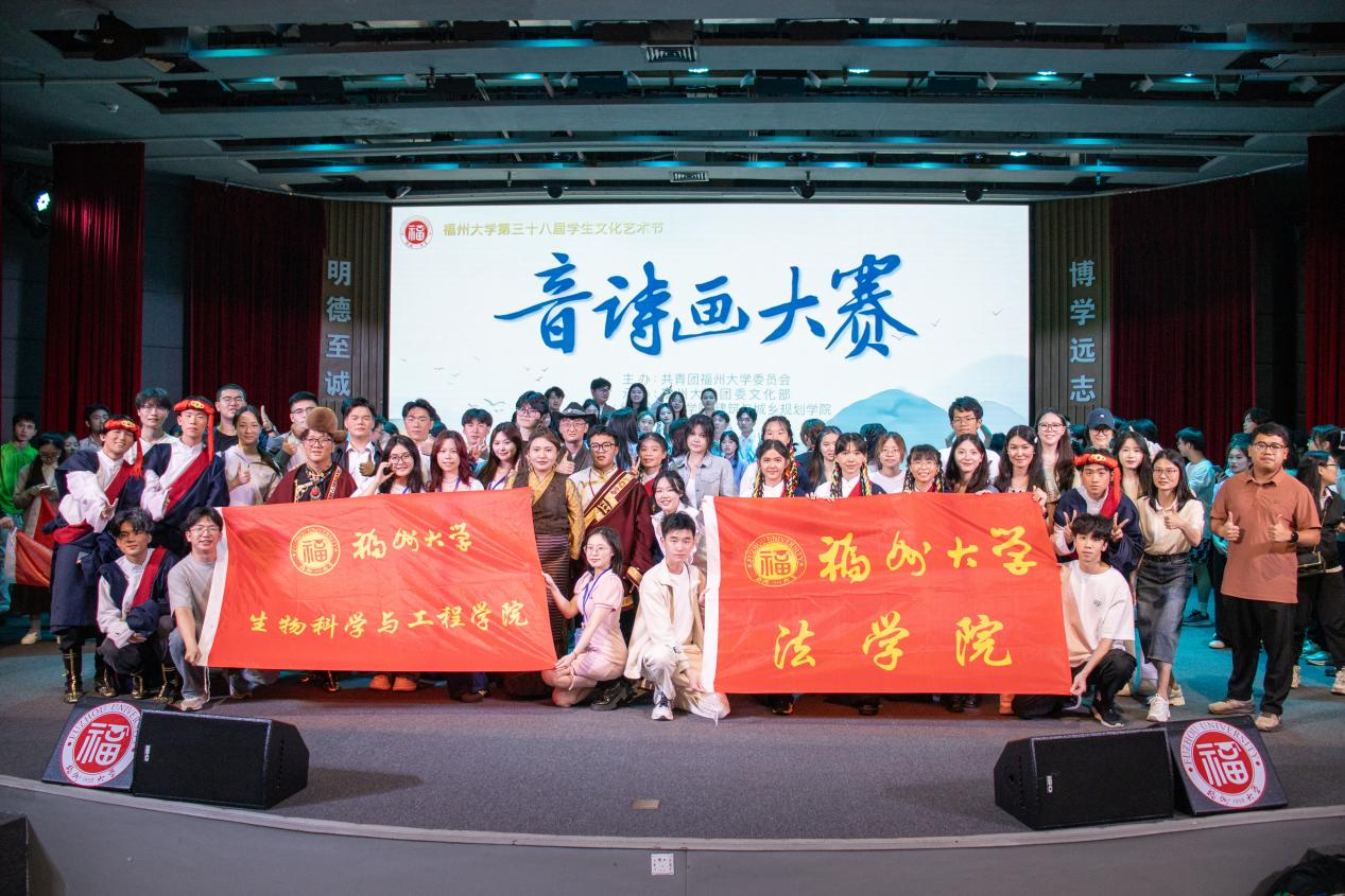 2025年5月11日晚19:30,由共青团福州大学委员会主办、福州大学团委文化部承办、福州大学经济与管理学院、建筑与城乡规划学院协办的福州大学第三十八届学生文化艺术节音诗画大赛在福州大学图书馆博学厅落下帷幕。经过激烈的角逐,我院携手法学院共同演绎的节目《山海缘》在18个学院报送的10个节目中突出重围,以93.01分斩获佳绩,获得了二等奖的好成绩。