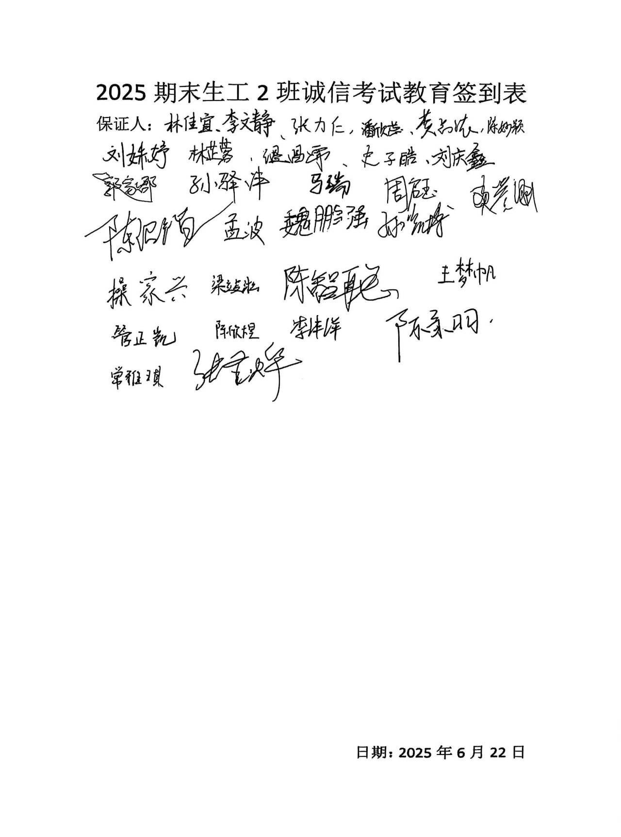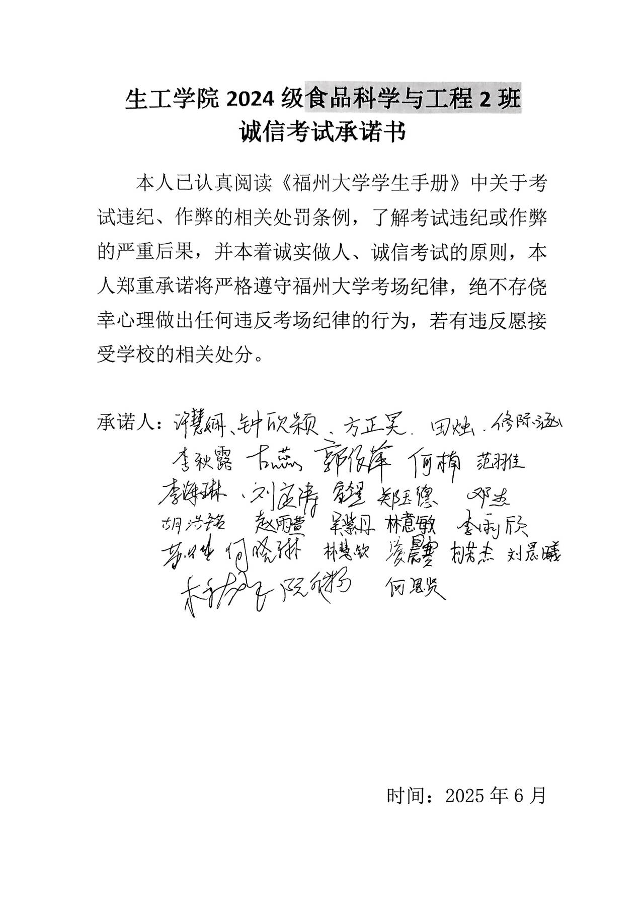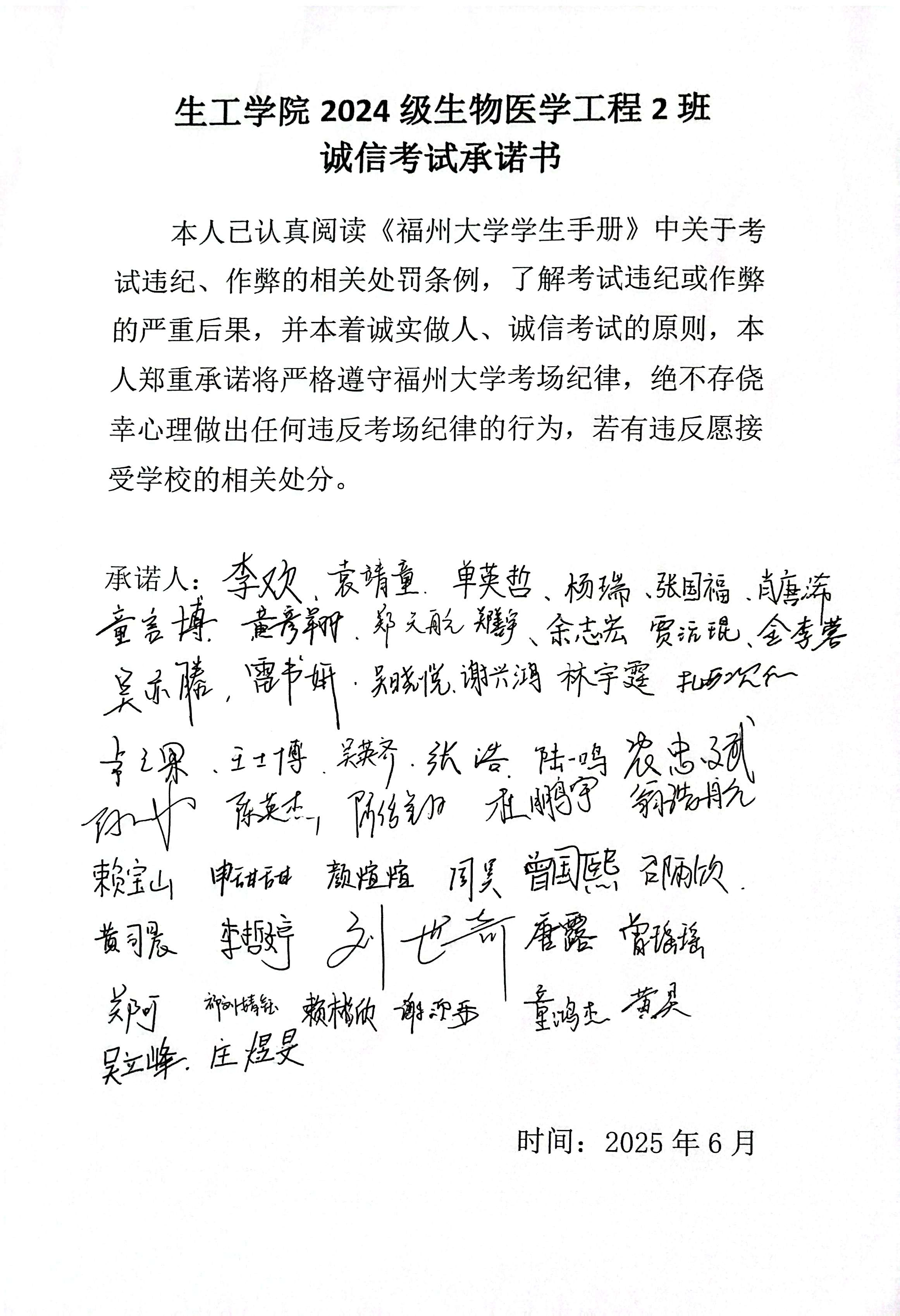 (各班签订诚信承诺书)