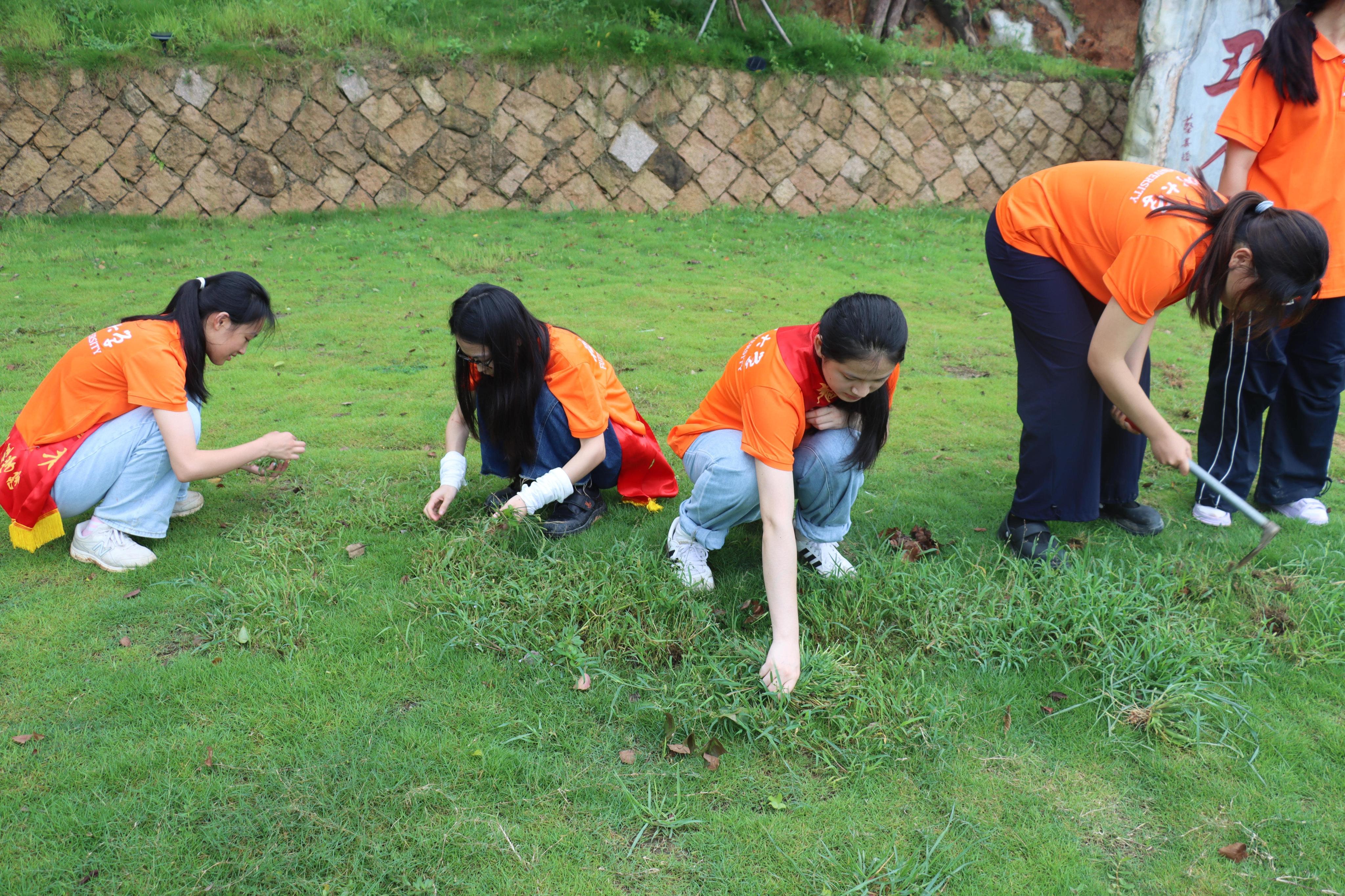 在徒步过程中,队员们不仅捡拾林间垃圾,还清理草地杂草,感受人与自然和谐共生的重要意义。当日下午,实践队师生沿上方山林路线开展“Plogging”活动。队员们携带垃圾袋、夹子等工具,分工清理林间垃圾,塑料瓶、食品包装袋、废弃纸箱等被逐一捡拾,缠绕在灌木上的塑料袋也被小心摘除,同时顺手拔除了影响植被生长的杂草。