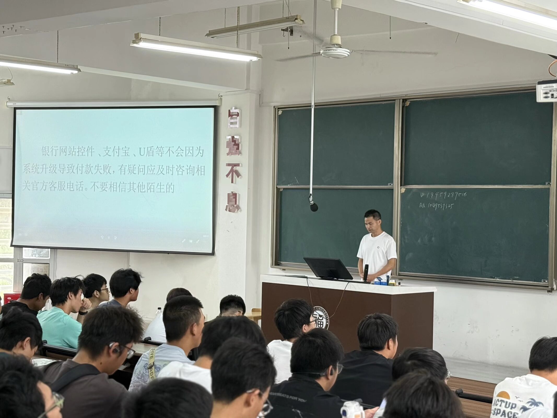 程翔老师结合真实案例视频,重点剖析了刷单返利、冒充客服、虚假交易等常见诈骗手法,提出“不轻信、不转账、多核实”的实用应对策略。针对校园贷陷阱,他警示同学们树立理性消费观念,通过正规渠道解决经济困难。在防盗方面,程老师讲解了物品保管要点与事发后的正确处理流程,帮助同学们筑牢财产“防火墙”。