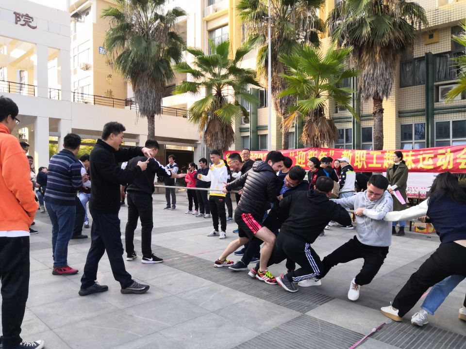 1月9日下午,我院2020年“迎新年”教职工趣味运动会在嘉锡广场顺利举办。全院教职工欢聚一堂,其乐融融,分成四组展开了激烈又充满趣味的角逐。院工会主席张志雄老师担任本次趣味运动会的现场主持人。