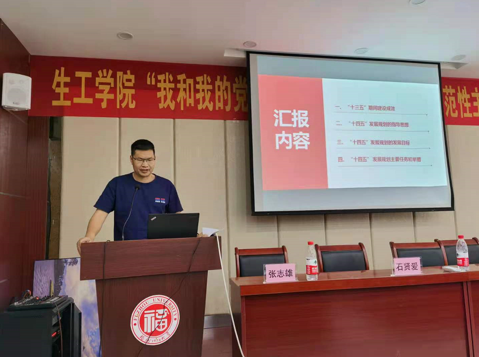 会议在庄严的国歌声中拉开序幕。汪少芸院长首先代表学院作了学院工作报告,报告客观详实地回顾过去一年学院在党建引领、人才培养、学科专业建设、师资队伍、科研能力、学术交流、工会工作等方面取得的成绩。并对2021年学院工作进行了展望,提出了清晰的目标和路径。接着,石贤爱副院长对学院十四五规划的制定做了详细说明,号召学院老师化压力为动力,齐心协力挖掘内外潜力,落实学校、学院发展战略目标,加快推进高水平学科建设。之后,工会主席张志雄做了学院2020年工会工作报告,并对学院《绩效工资实施细则》和《教职工福利与困难补助实施办法》修订稿做了解读说明。王秀萍书记结合《学院奖励性绩效核拨明细表》详细分析了学校绩效文件的实质,希望全体老师立足本职,团结奉献,共同把学院绩效的蛋糕做大,切实提高广大教职员工的获得感和幸福感。大会票决通过了《生物科学与工程学院绩效工资实施细则》和《生物科学与工程学院教职工福利与困难补助实施办法》修订稿。