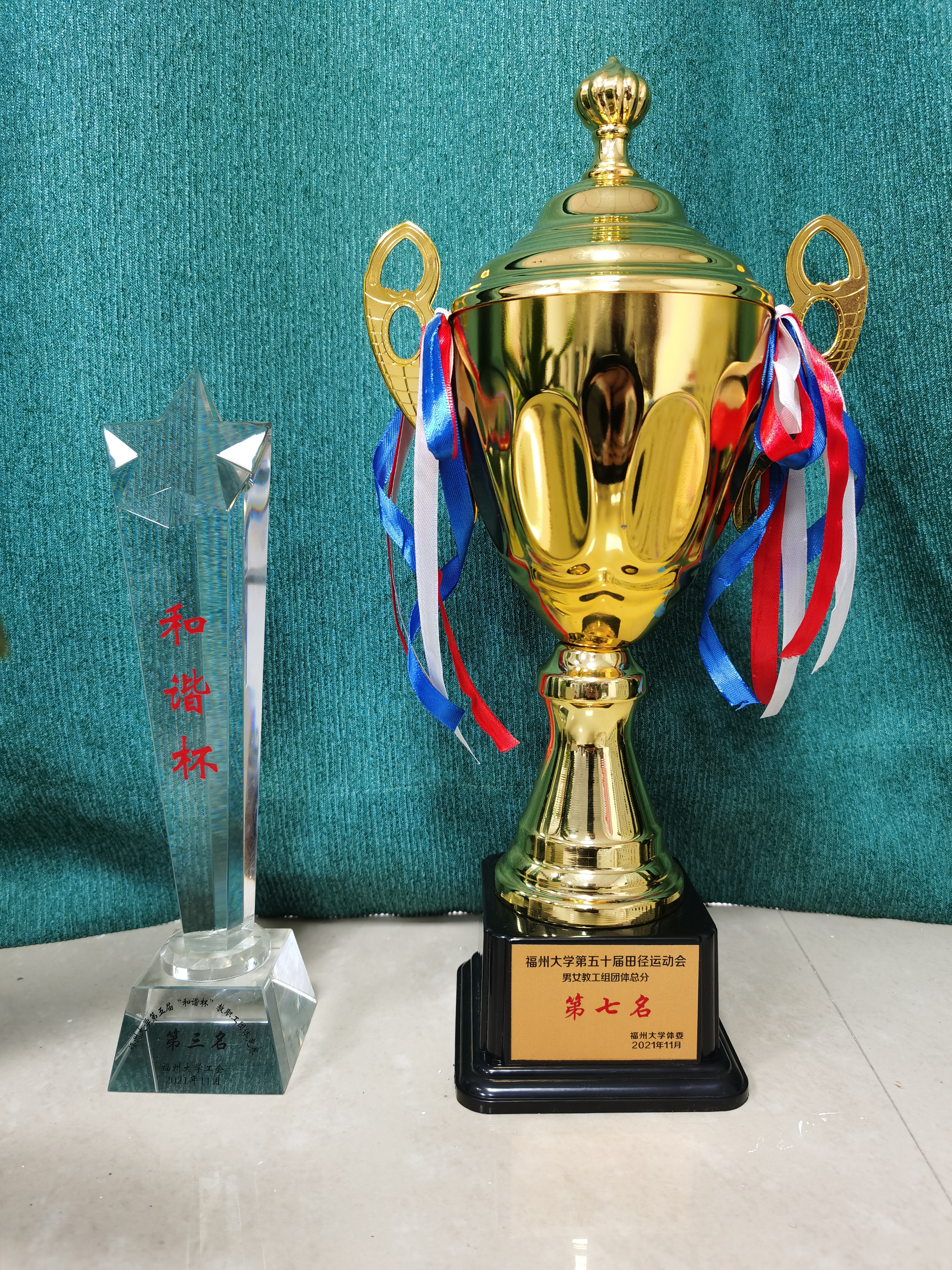 在刚刚落幕的福州大学第50届田径运动会上,我院教工组在22个参赛单位中获得团体第七名的好成绩,成绩继续保持在学校第一方阵!在闭幕式上,我院还获得了两年一次的福州大学第五届“和谐杯”教职工团体竞赛第三名,也创下了该项评比迄今为止的历史最好成绩。