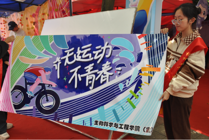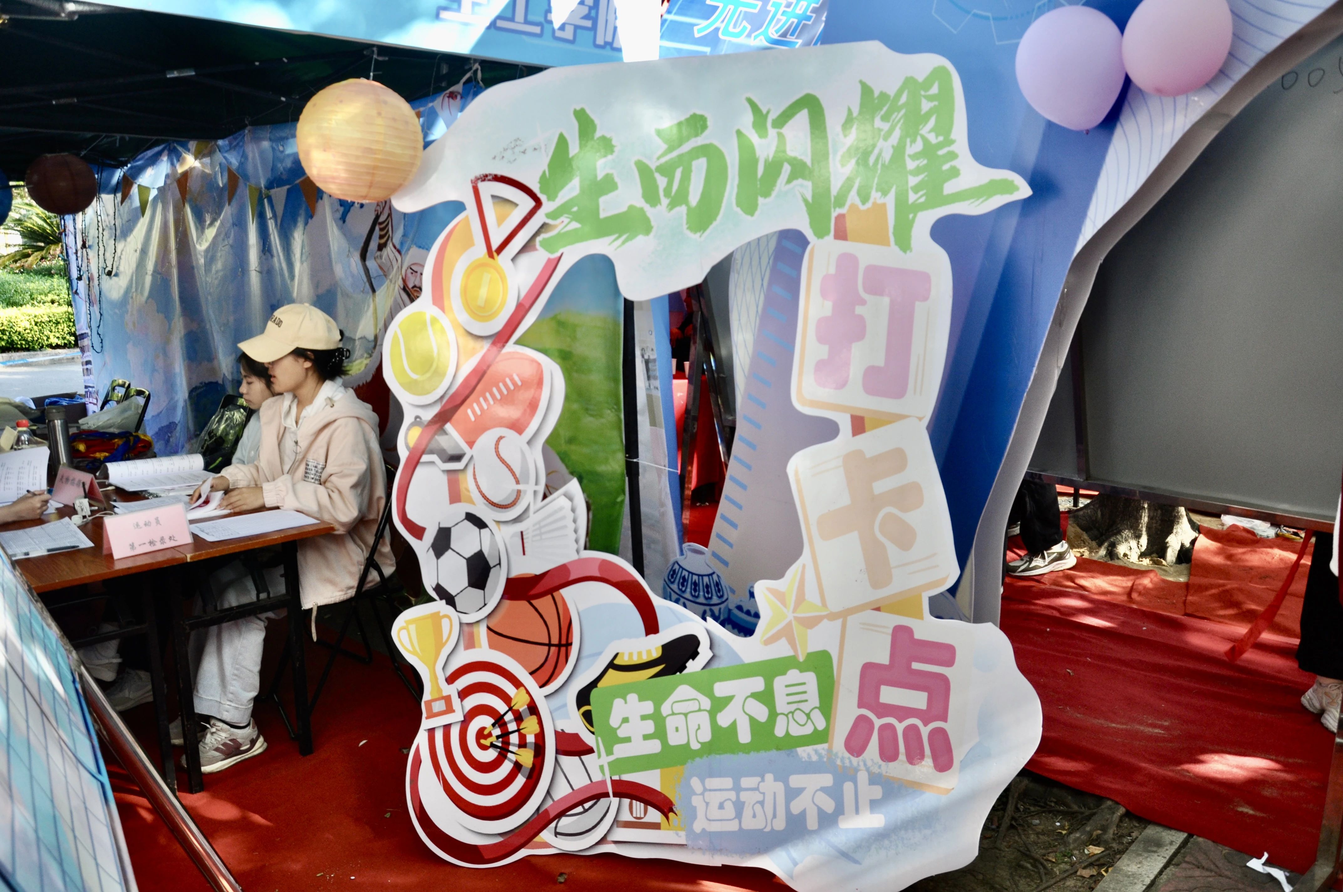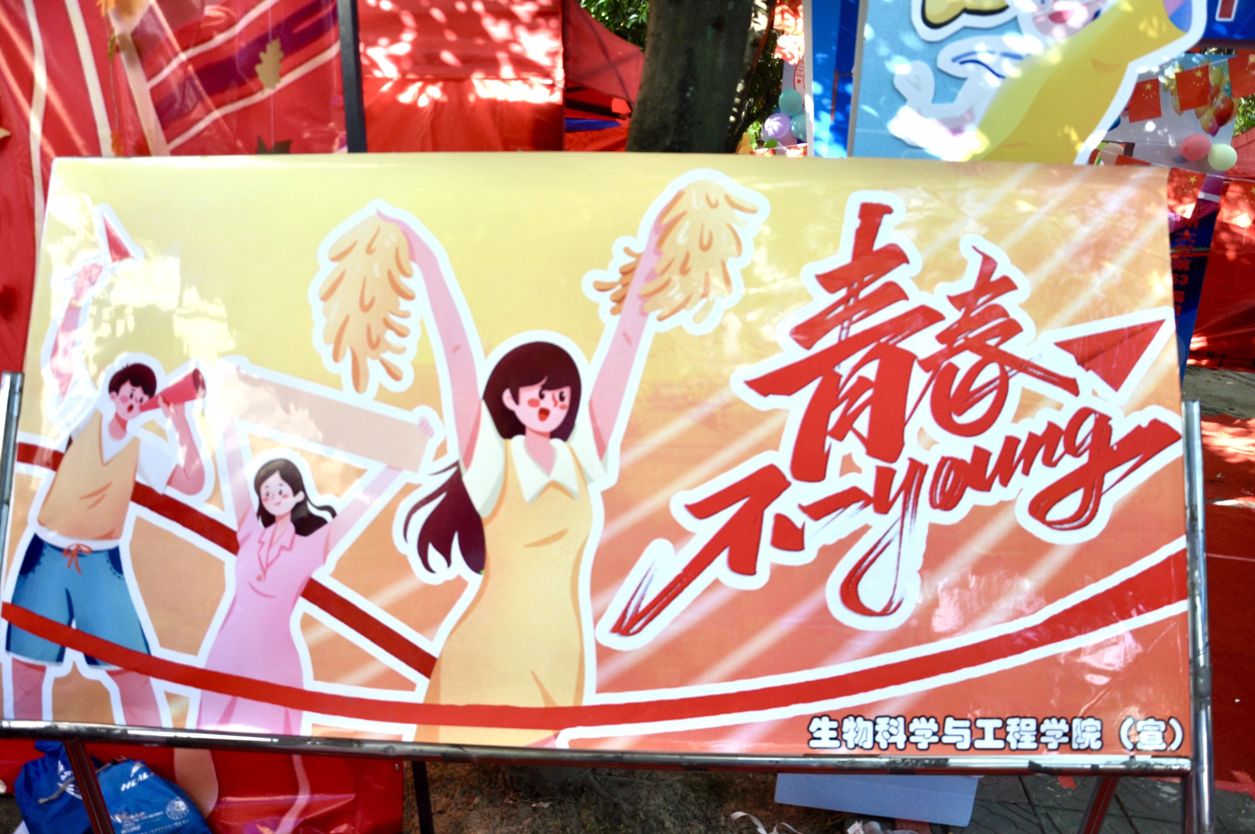 “生而闪耀,青春无畏,攻无不克,筑梦扬威”,帐篷上的话语道出了生工学子"天生我材必有用"的信心与志向。而在帐篷旁的打卡点将会记录下一个个“生而闪耀”的精彩时刻,运动健儿们以青春洋溢的热情,在欢呼与喝彩、竞技与挑战中,书写着“青春不一young”的生工新篇章!