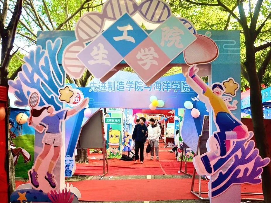 当一抹绚烂的色彩闯入视野,我们来到了生工学院运动会大本营。大本营大门融入海洋和生物的元素,以卡通运动员的形象体现出生工学子对运动的无限热爱。