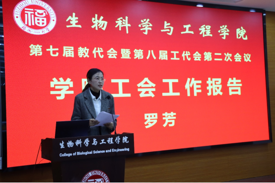 接着,会议听取并审议了学院工会主席罗芳教授所作的2024年工会工作报告。报告指出,在党的二十大、二十届三中全会和中国工会十八大精神的指导下,学院工会以推进民主政治建设、维护教职工合法权益为主线,坚持“围绕中心促发展、贴近教工办实事、凝心聚力促和谐”的工作思路,充分发挥工会的桥梁纽带作用,增强工会的吸引力和凝聚力,为学院建设和发展作出贡献。各工会小组分别对会议报告进行了认真充分的讨论,并提出了意见和建议,各工会组长向大会会务组提交了讨论情况和提案。会议还审议通过了《学院2024年经费收支报告》、《学院工会2024年经费收支报告》、《生物科学与工程学院教职工福利与困难补助实施办法》和《生物科学与工程学院第七届教代会暨第八届工代会第二次会议决议》。