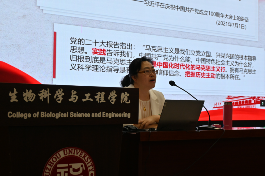 3月27日晚,马克思主义学院的谢菲教授以《马克思主义为什么行?》为题,为学员们呈现了深入人心的第三堂课,谢菲老师以深厚的学术素养和饱满的人文情怀,从纵向的历史逻辑、横向的比较鉴别和与中华传统文化的相契性三个方面娓娓道来,将马克思主义在中国从萌芽到兴盛的激扬历史化作了在场学员心中奔涌的情怀。学员们深受党史感染,立志以一往无前的奋斗姿态和风雨无阻的精神状态为中华民族伟大复兴做出自己的贡献。