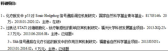 主要研究方向是发育生物学,以小鼠毛发发育为模型,研究化疗药物对毛发以及其它正常组织的损伤的分子机制,探索防护化疗副作用的方法。